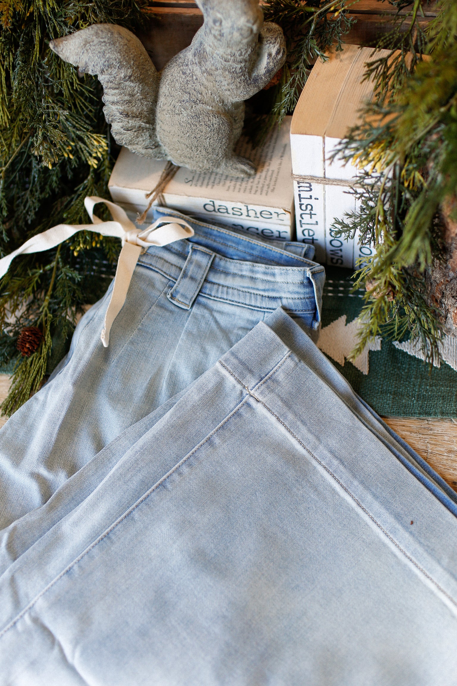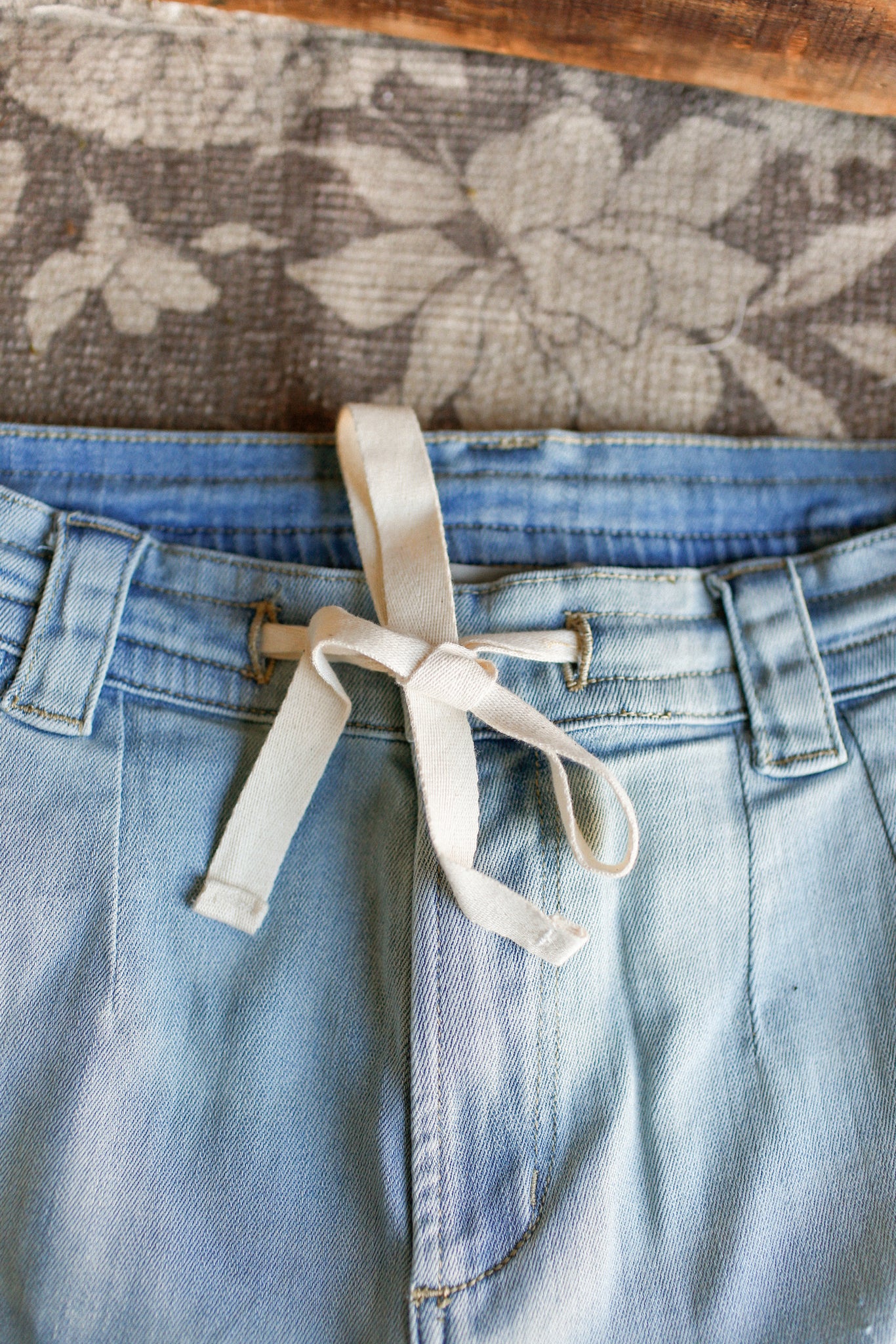 Effortlessly chic meets comfort in these Washed Denim Tie Front Pants!