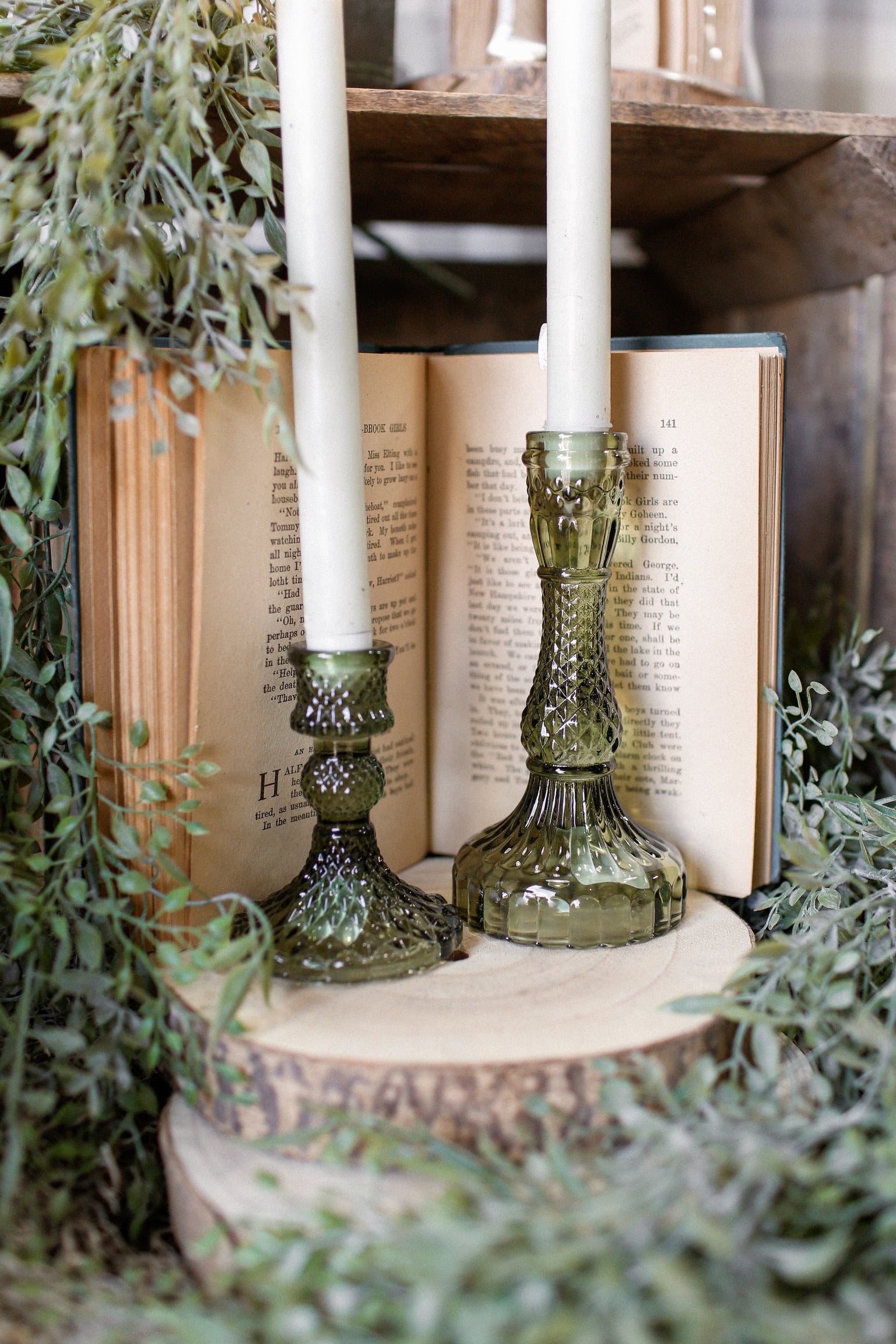 Illuminate your space with the whimsical charm of our Forest Green Candlestick. Crafted from vibrant green glass, this candle holder comes in two sizes to fit your decor needs. Add a touch of nature to your home and cozy up with a warm, flickering candle whether real or flameless.