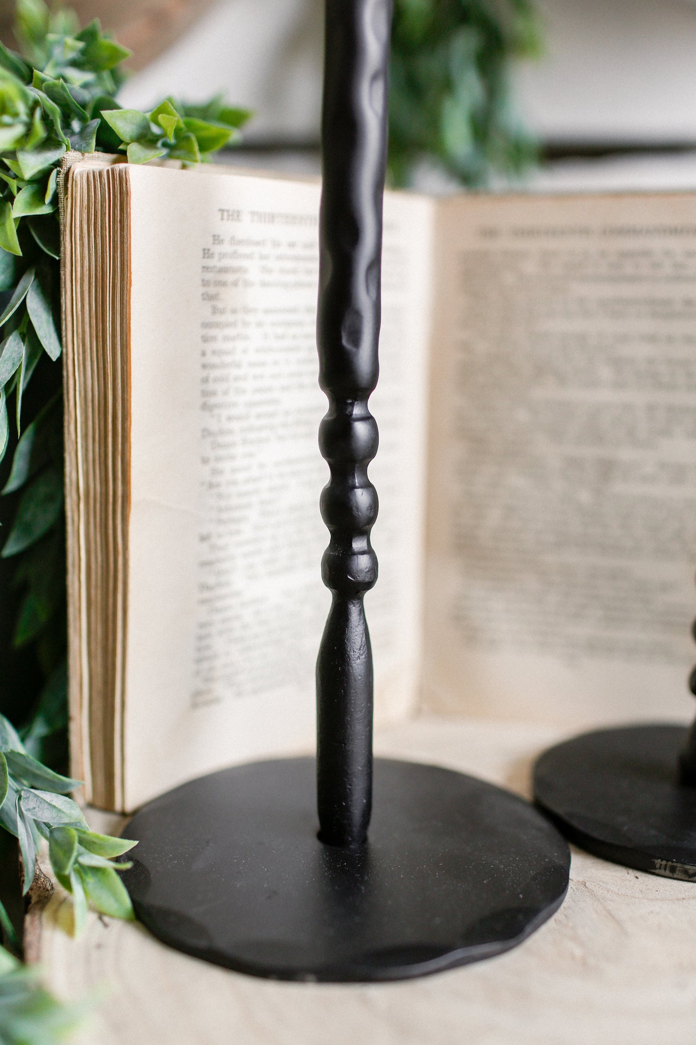 Experience the timeless beauty of our Tall Hand-Forged Black Iron Candlesticks! Crafted with care from forged iron, these candlesticks come in two sizes for your choosing. Perfect for layering on a mantle or as standalone pieces, they add a touch of elegance to any room.