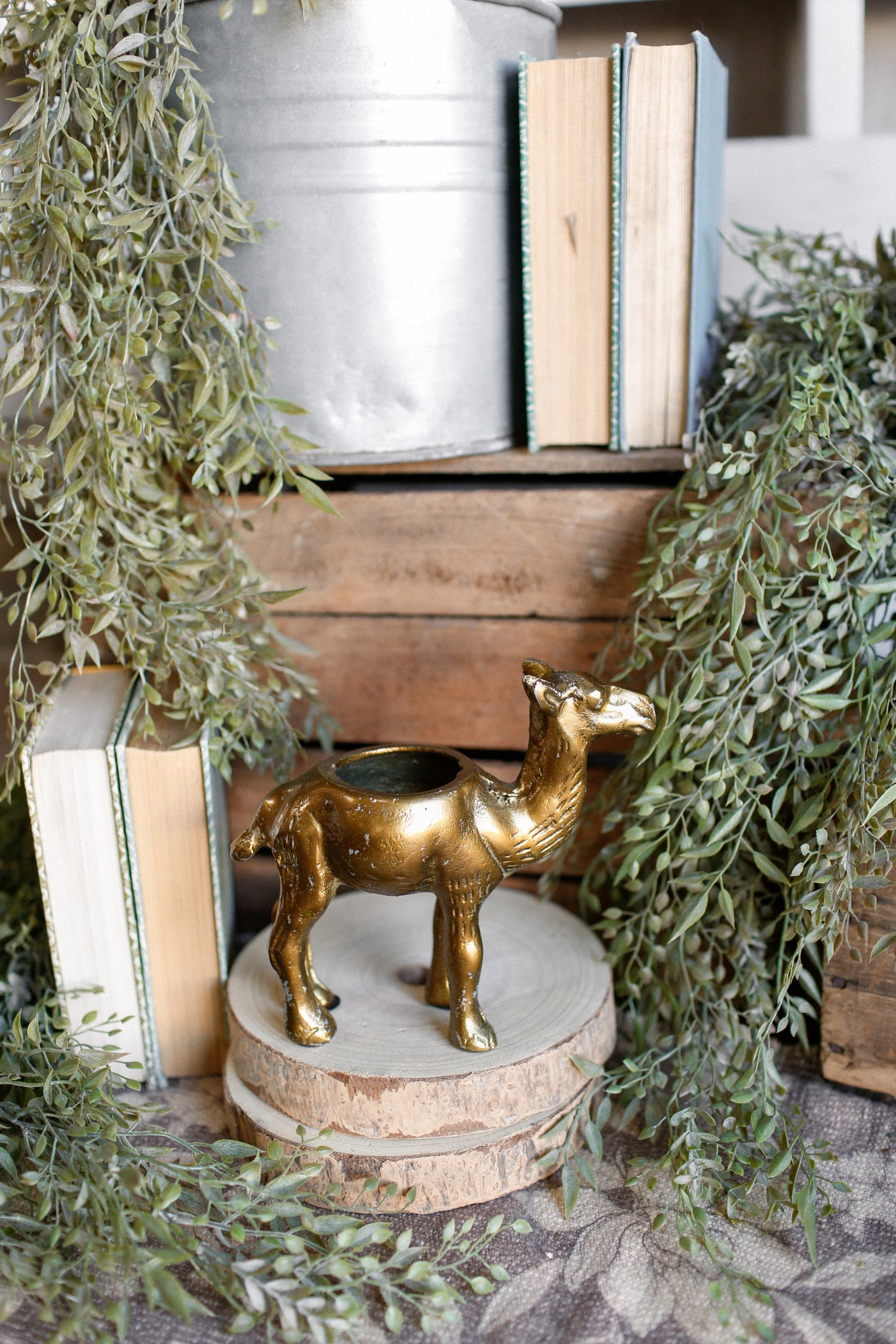 Add a splash of sparkle to your space with the Gilded Camel Planter. Featuring a fun camel design with a gleaming gilded finish, this planter brings a playful yet elegant touch to any room.