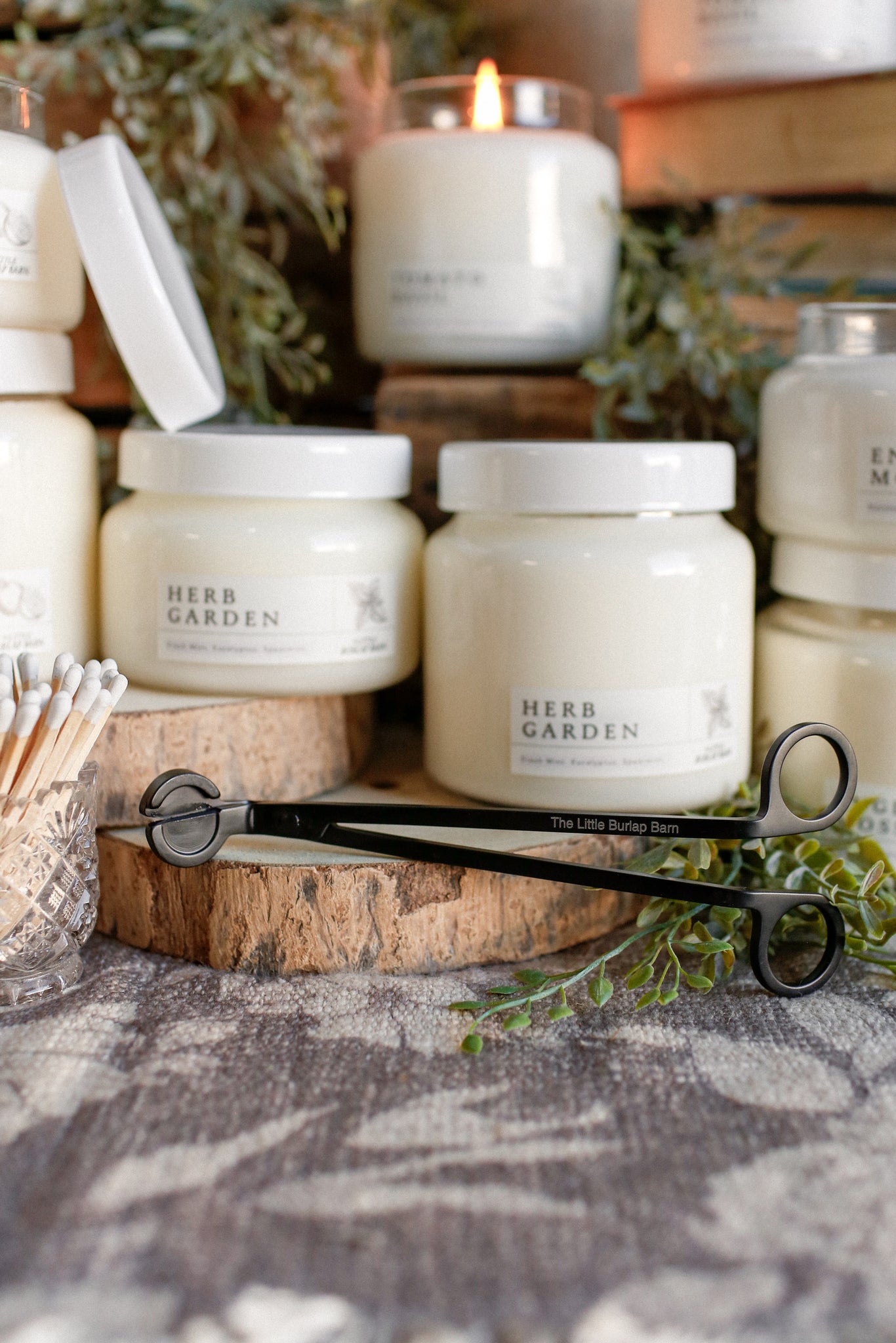 Keep your candles looking their best with this must-have accessory--our custom black wick trimmer engraved with "The Little Burlap Barn".