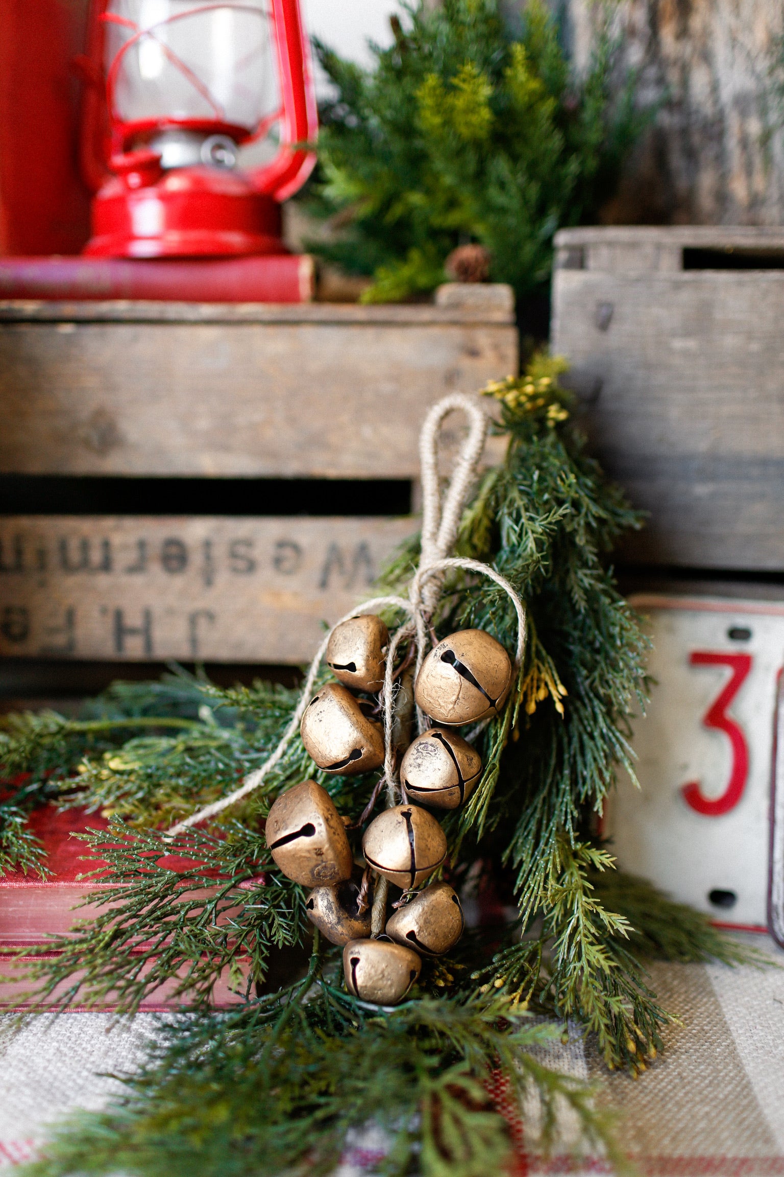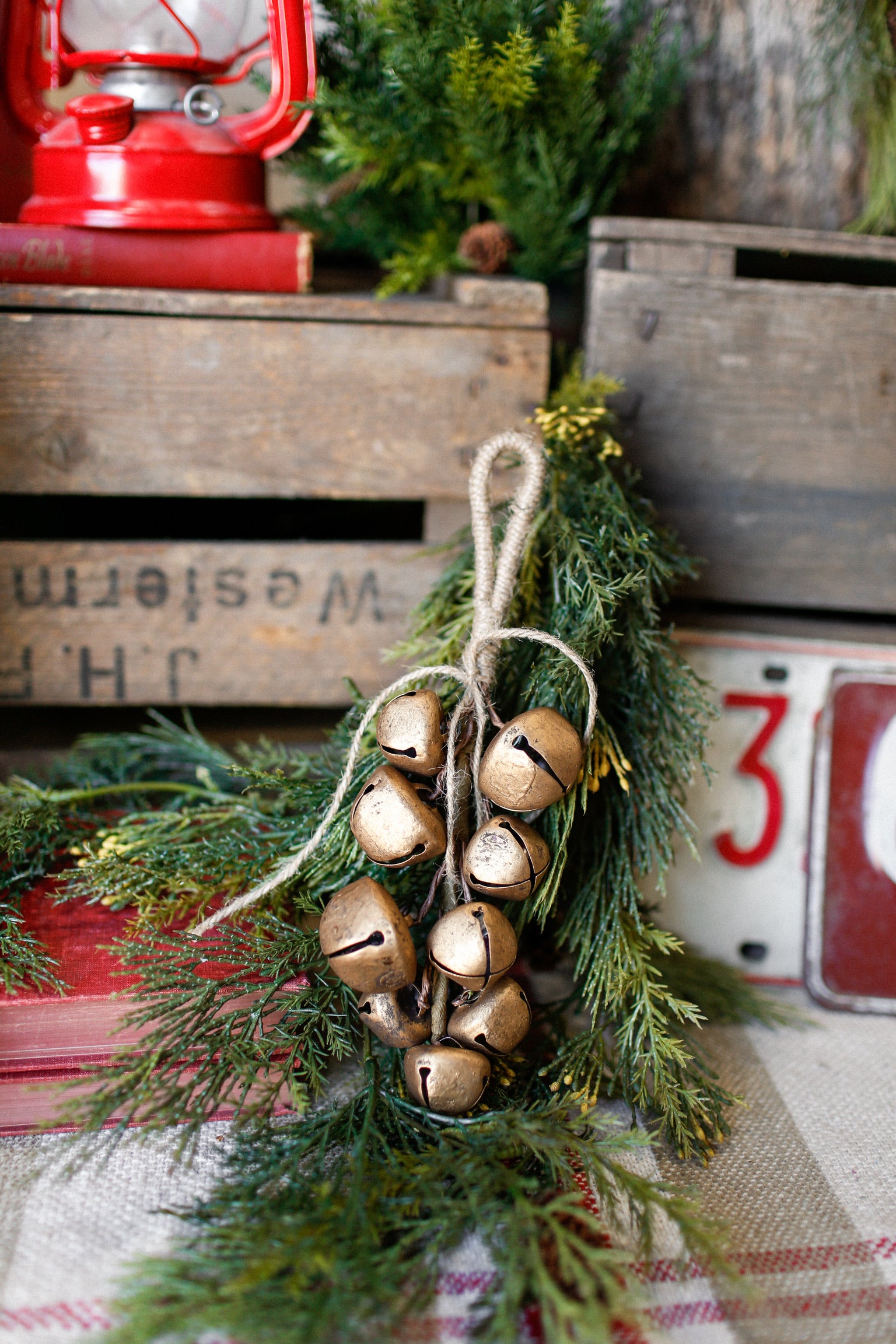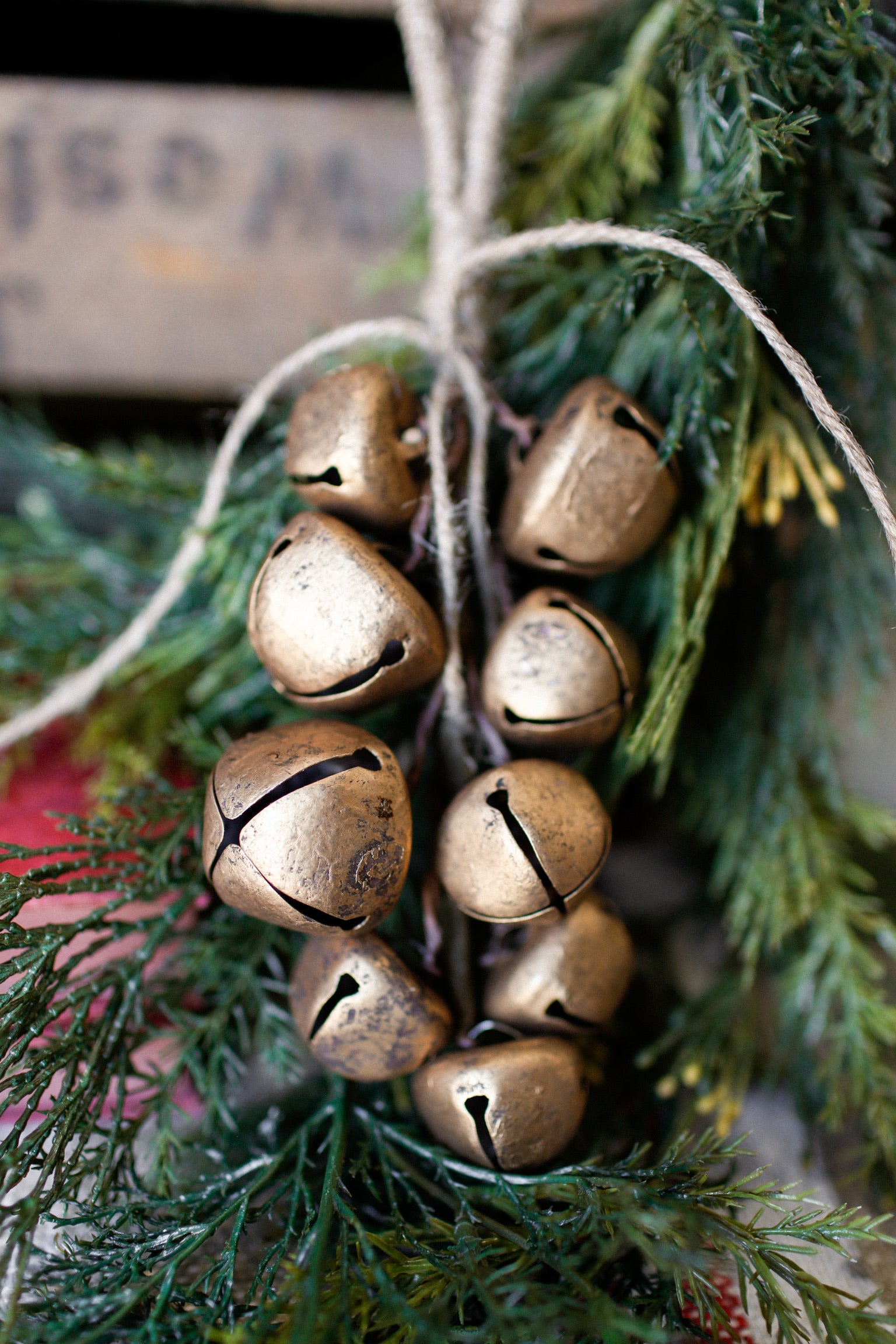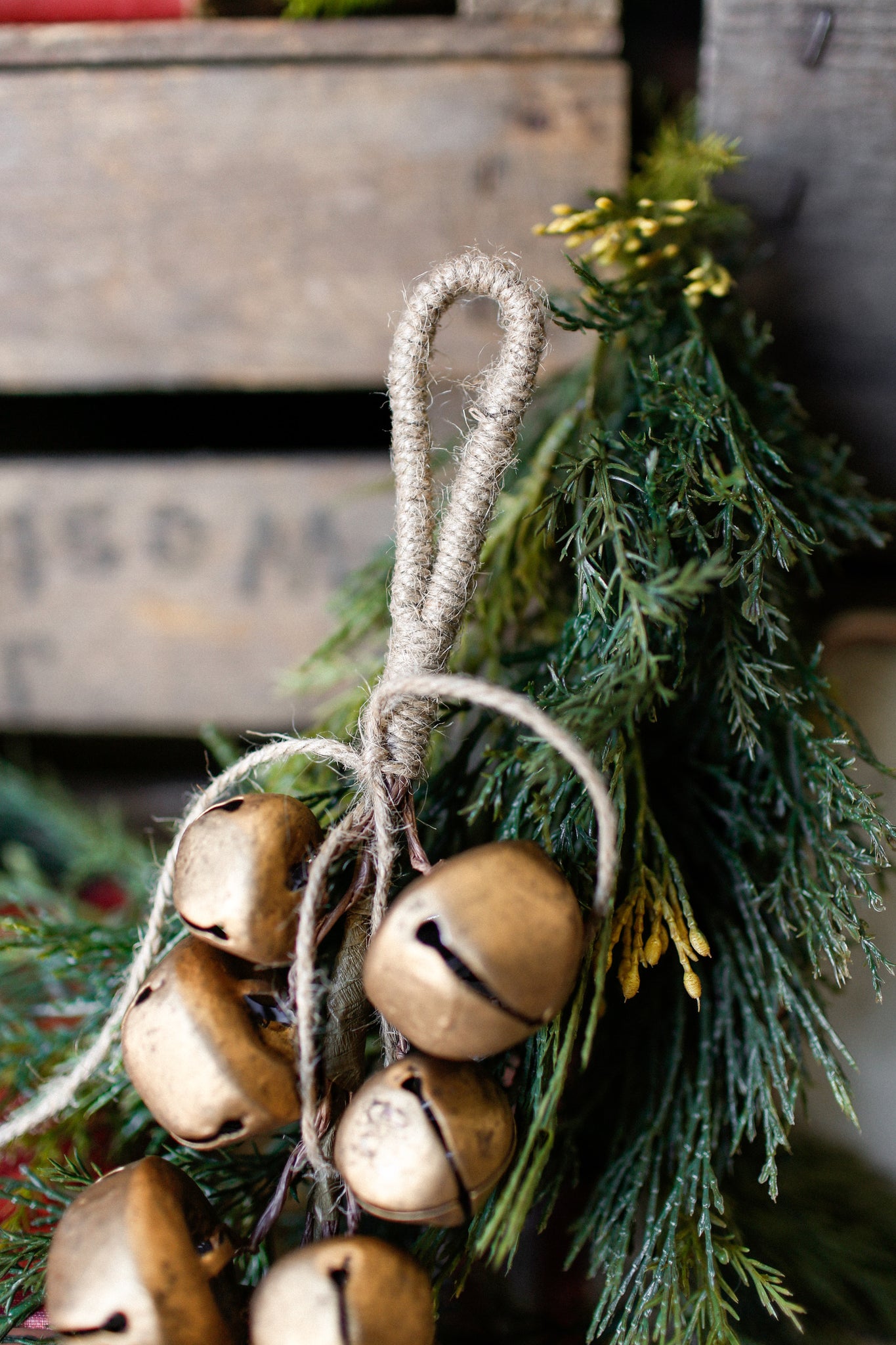 Add a festive jingle to your holiday cheer with our Mini Aged Sleigh Bell Cluster! Hand-forged from aged metal and wrapped with rustic twine, this charming bell doesn't just look authentic—it actually rings! Perfect for attaching to gifts, hanging on your Christmas tree, or adding a whimsical touch to wreaths and garlands! Bring a bit of vintage holiday magic to your decorations this season.
