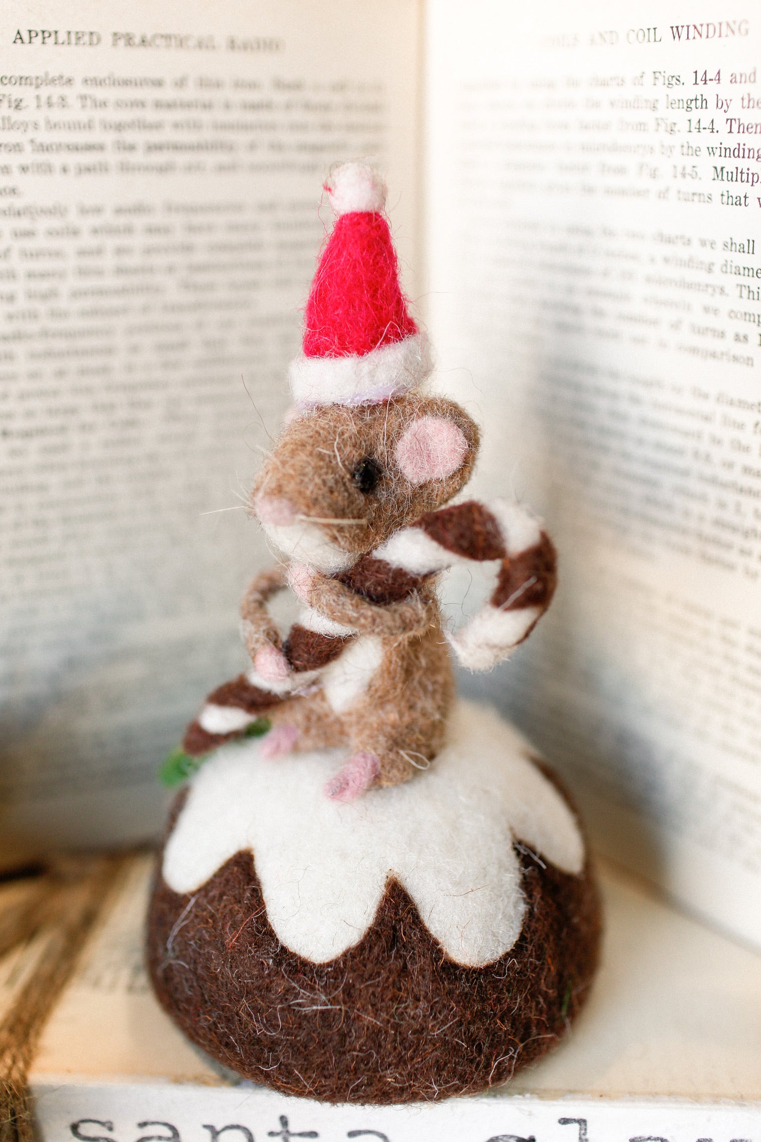 This charming handmade felt mouse perches adorably atop a delicate dessert pastry, bringing whimsical sweetness to your seasonal displays. Crafted with meticulous attention to detail, each mouse features expressive character and soft, touchable felt construction. Perfect for adding a playful, unexpected twist to your holiday décor—whether nestled on a shelf, displayed in a festive vignette, or given as a delightful gift. A deliciously cute conversation starter that celebrates the joy of handmade artistry.