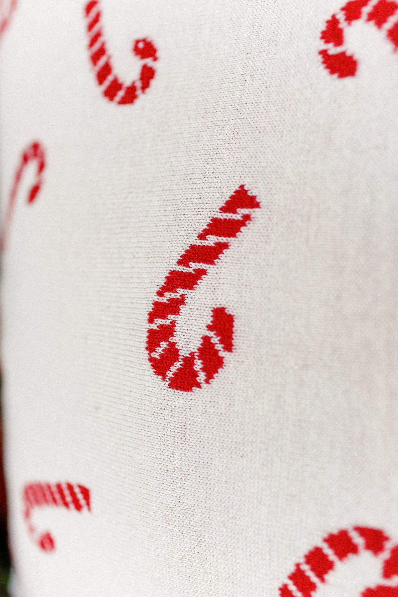Cozy up your space with this fun Knit Candy Cane Pillow! Featuring a creamy background adorned with bright red candy cane prints, it adds a festive pop of color and charm. Perfect for snuggling during the holidays or brightening up your winter décor with a playful twist.