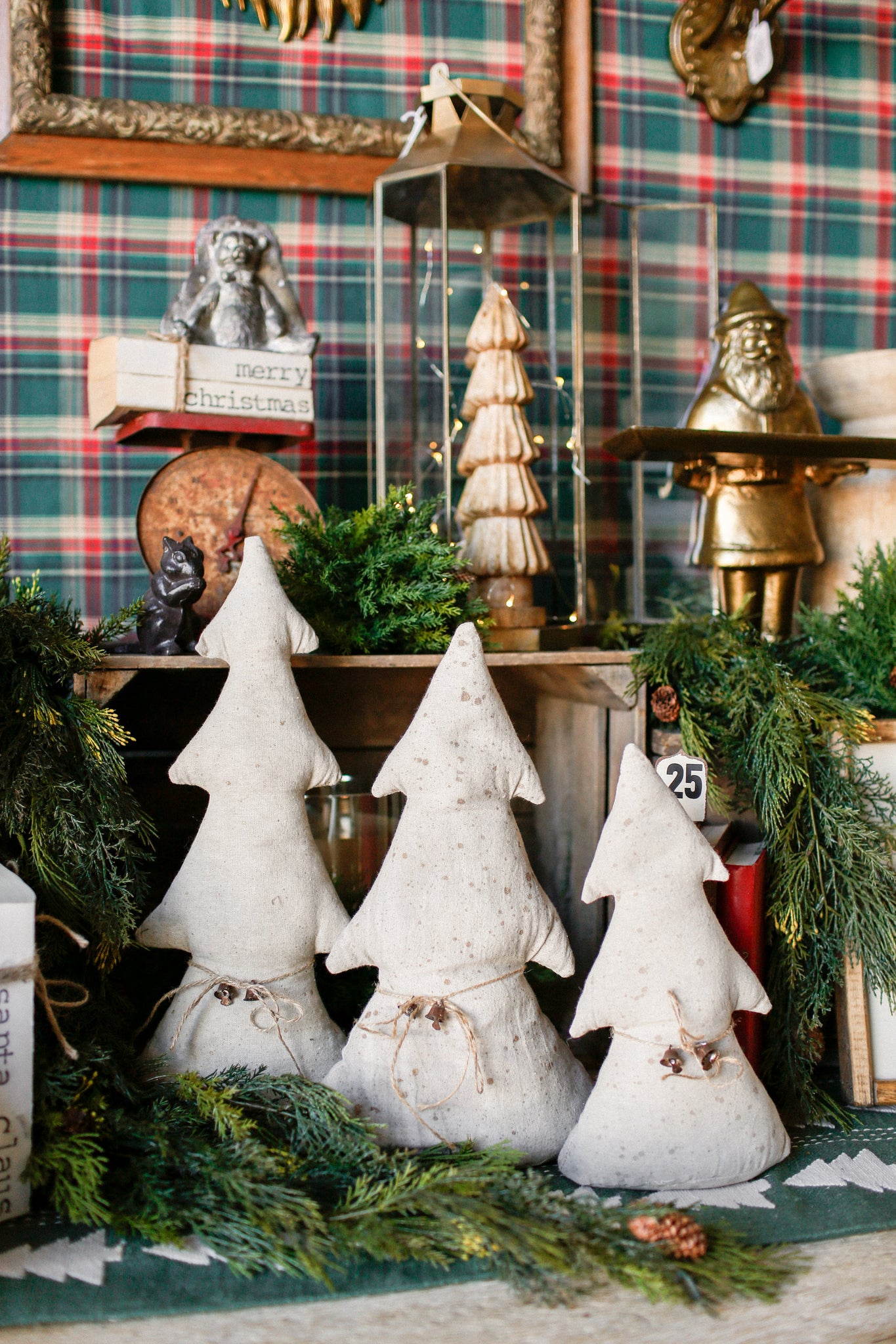 We love these handmade natural cotton canvas trees that have been slightly antiqued & feature twine & a bell. Plus, they have sand in the bottom so they can stand on their own! Perfect for that cozy, comfy Christmas.