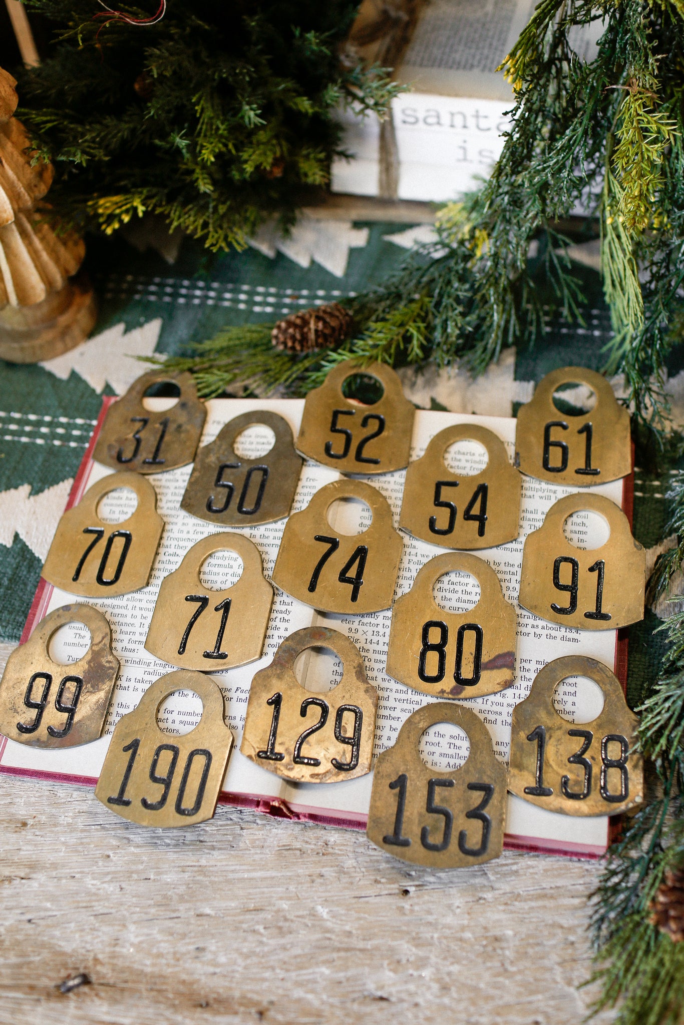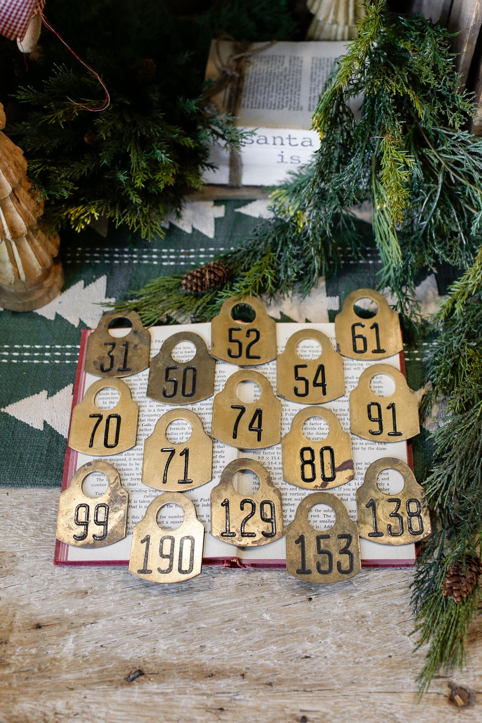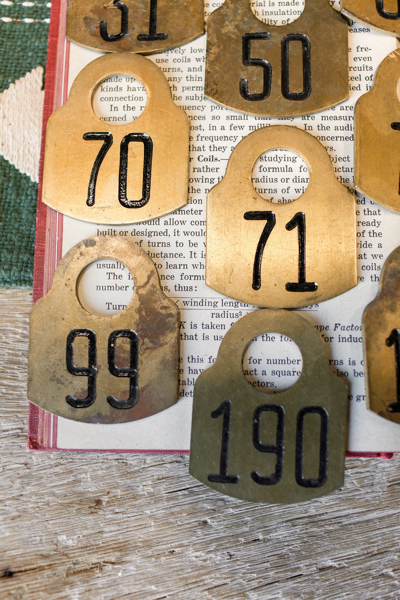 Step back in time with these authentic solid brass cow tags dating back to the 1940s–1950s. Each double-sided tag carries a unique number and was once used to identify cattle on family farms. Pick a number that celebrates a special moment—birthdays, anniversaries, lucky numbers—or just enjoy the history and charm.