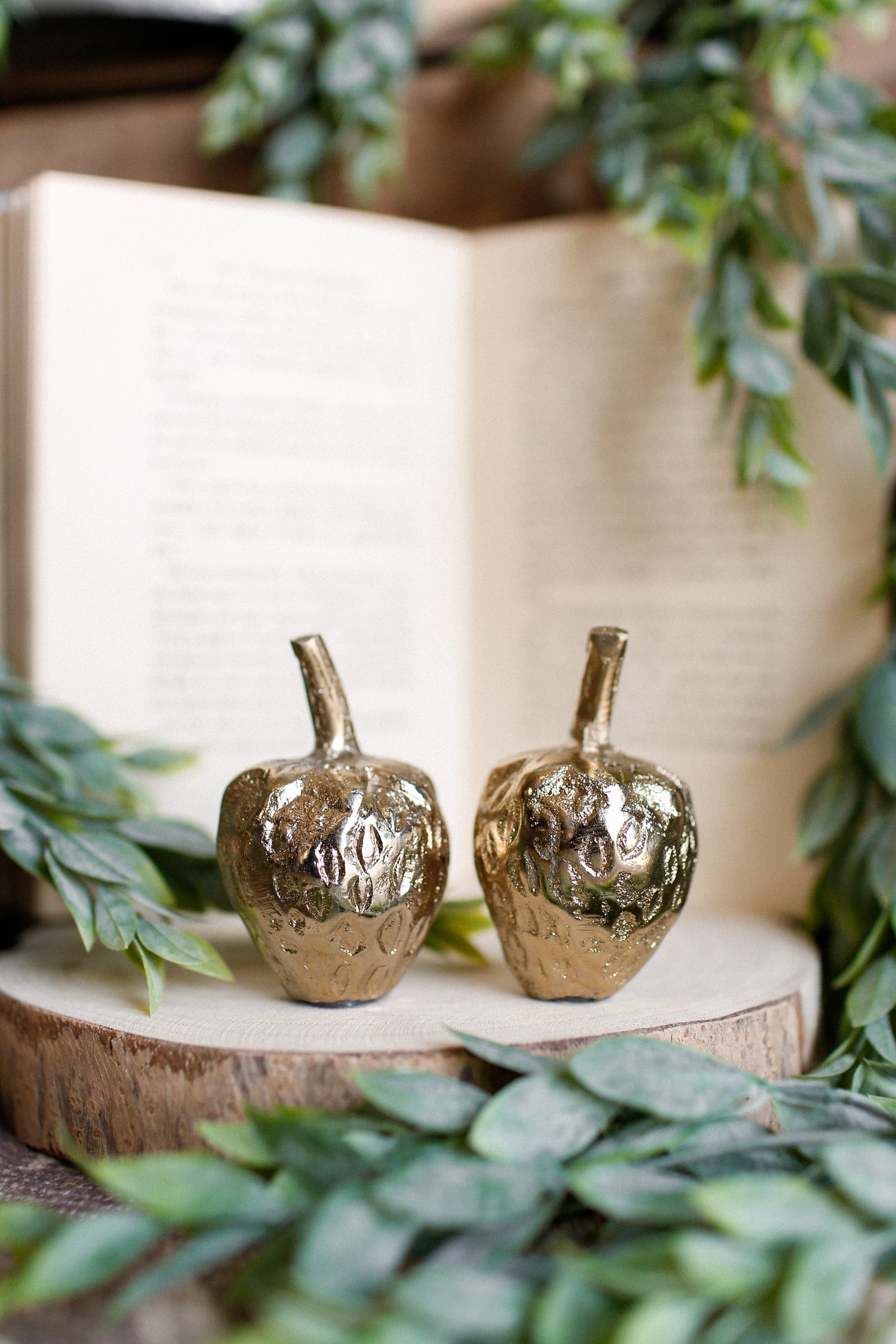 Sprinkle some golden sweetness onto your table with these charming Gilded Strawberry Salt & Pepper Shakers! Crafted with a luxurious gold finish, these adorable berry-shaped shakers bring warmth and whimsy to your spring and summer gatherings. Perfect for picnics, garden parties, or everyday dining, they combine playful design with practical function. These delightful little treasures add a touch of elegance and personality to your tablescape while keeping your favorite seasonings within easy reach. A fun way to celebrate the season in style!