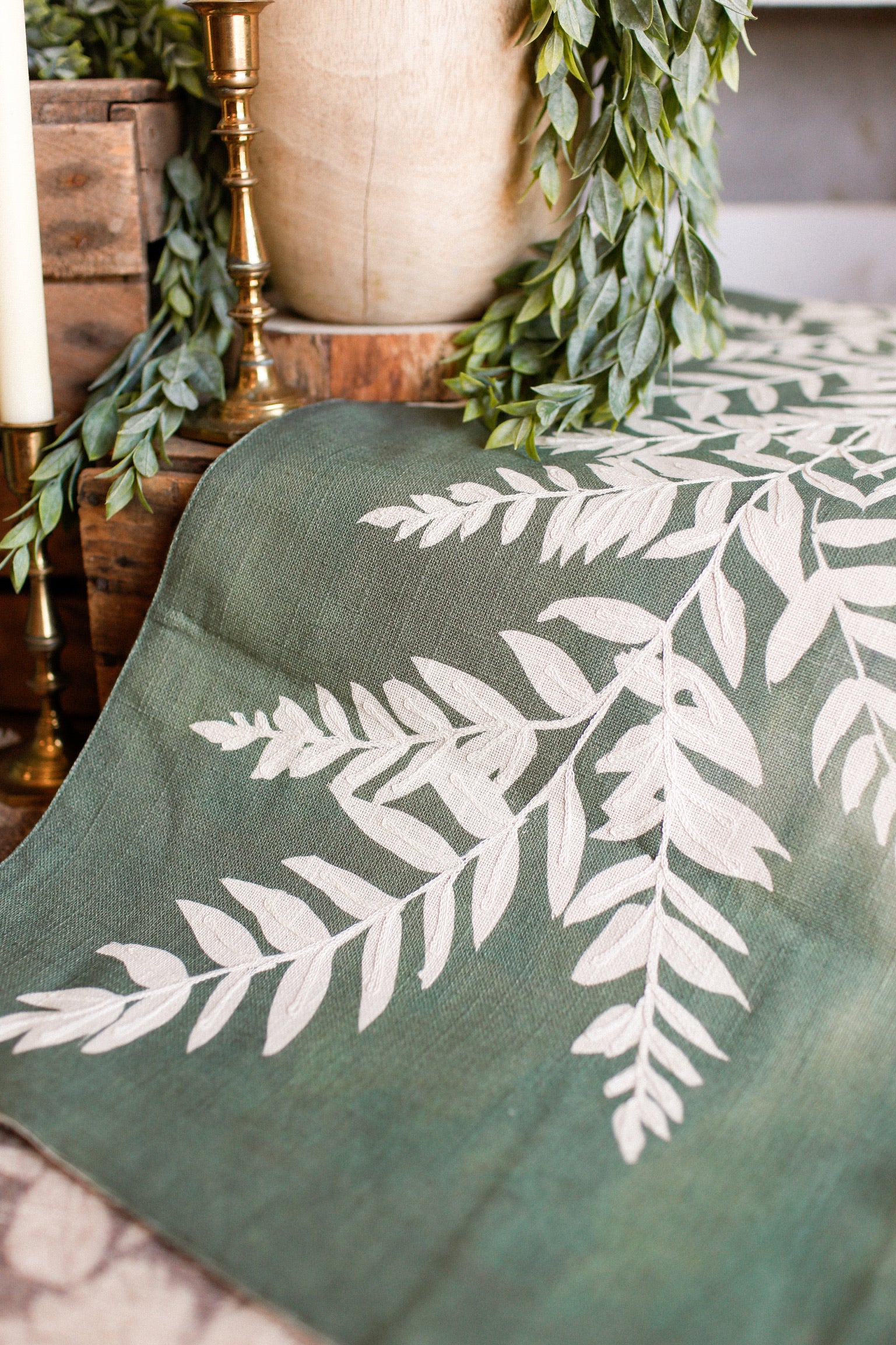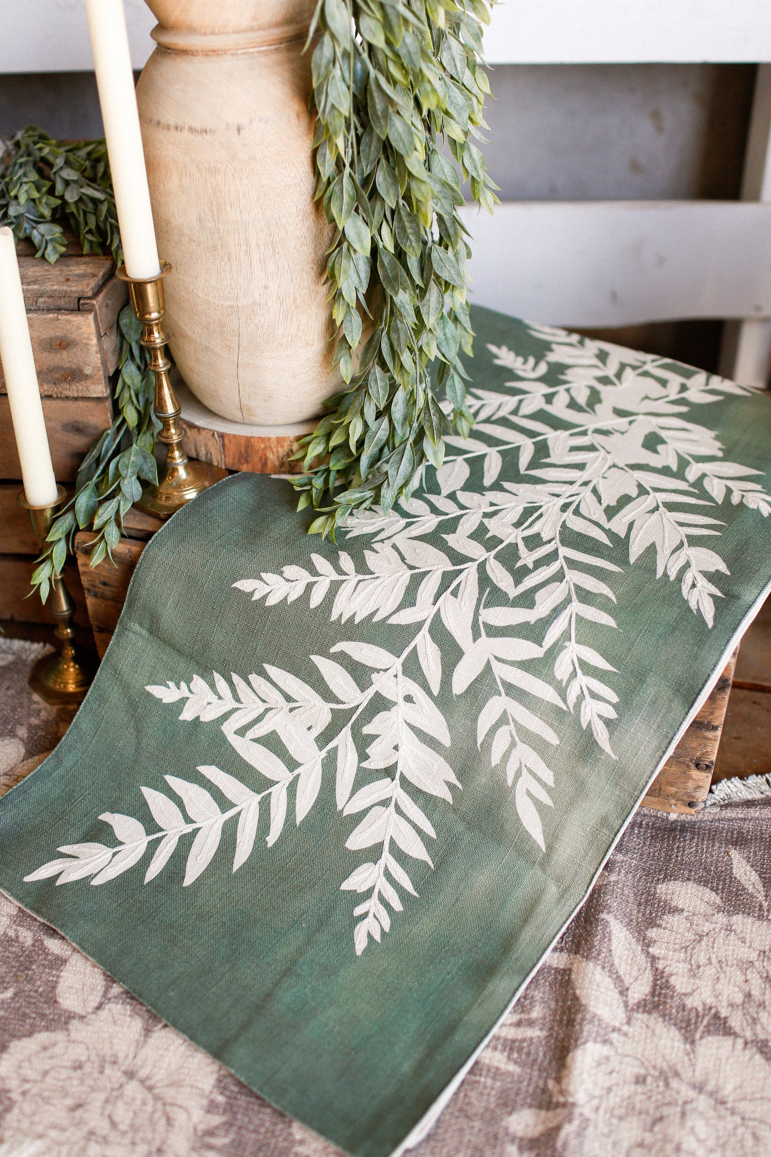 Bring spring indoors with this charming Fern Bank Runner! Featuring a crisp green background with a delicate cream fern print running down the center, it's the perfect way to add fresh, botanical vibes to your home. Whether you're styling a hallway, table, or entryway, this cheerful runner captures the essence of the season and brings a touch of nature's elegance to any space. Ideal for spring decorating and year-round garden-inspired style!