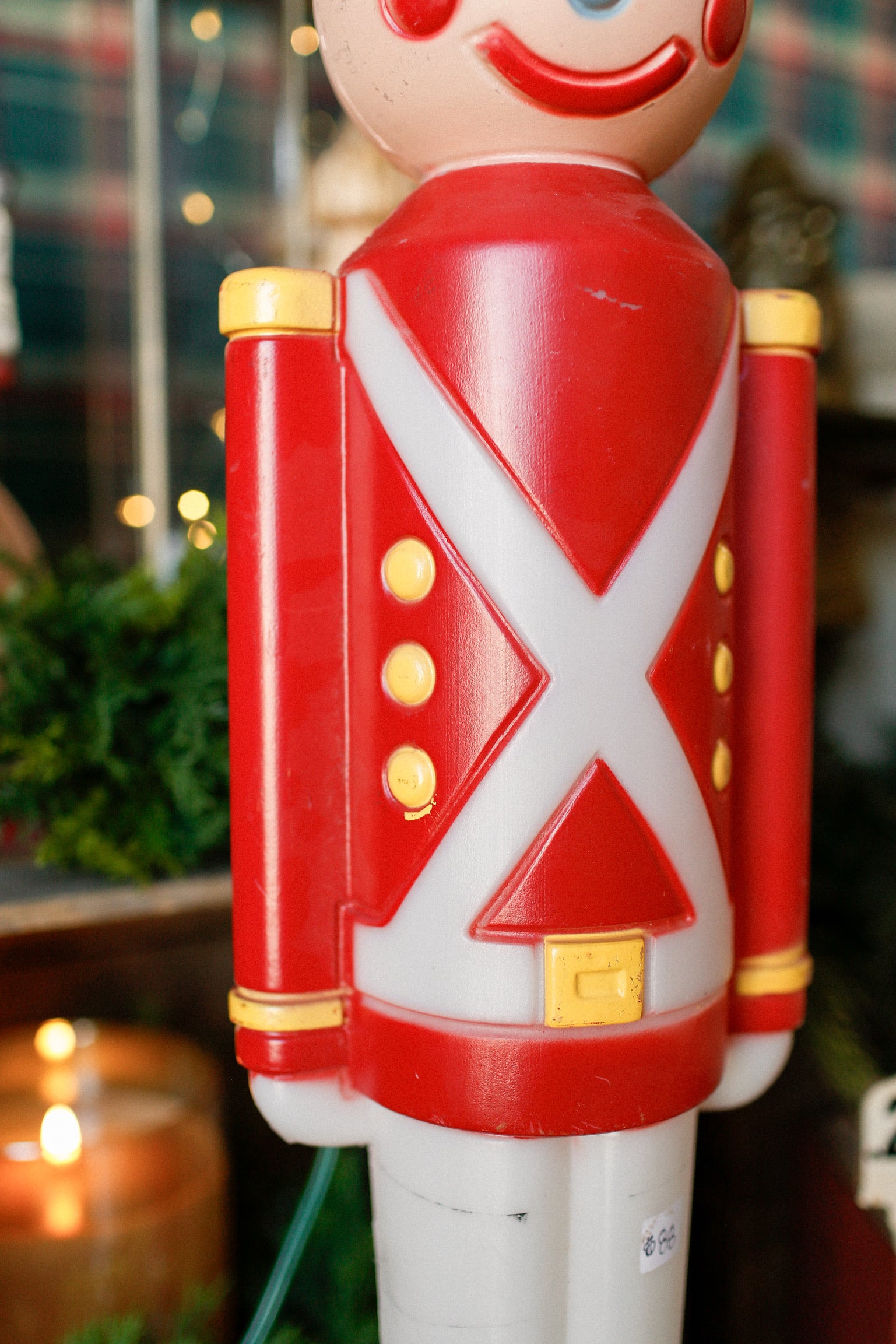 Bring nostalgic charm to your holiday display with this classic blow mold toy soldier! Dressed in bold red and white with a striking black hat, this piece captures the whimsical spirit of vintage Christmas decorating.