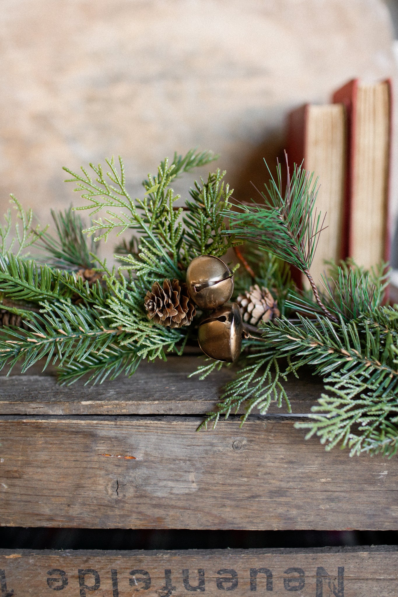 BACK THIS YEAR! This garland features pinecones and bells in a mix of faux cedar stems, and varying forest tones. This is our only garland that has aged bells attached!