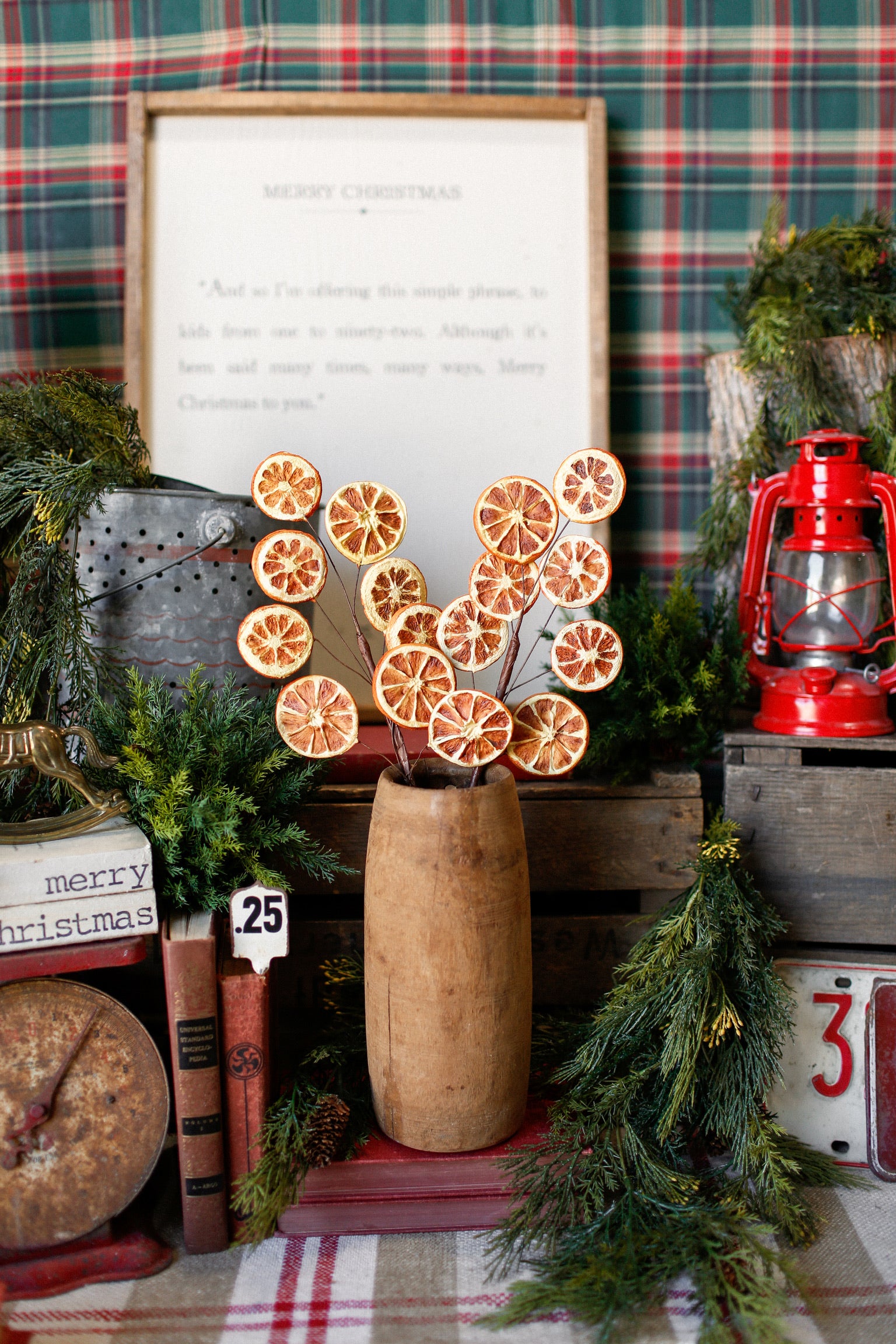 NEW THIS YEAR! Bring a festive touch with the Dried Orange Slice Branch—perfect for adding a splash of citrusy charm to your Christmas trees or holiday arrangements. Its lifelike appearance blends natural warmth with seasonal cheer, making it a fun and unique decoration to brighten your holiday décor.