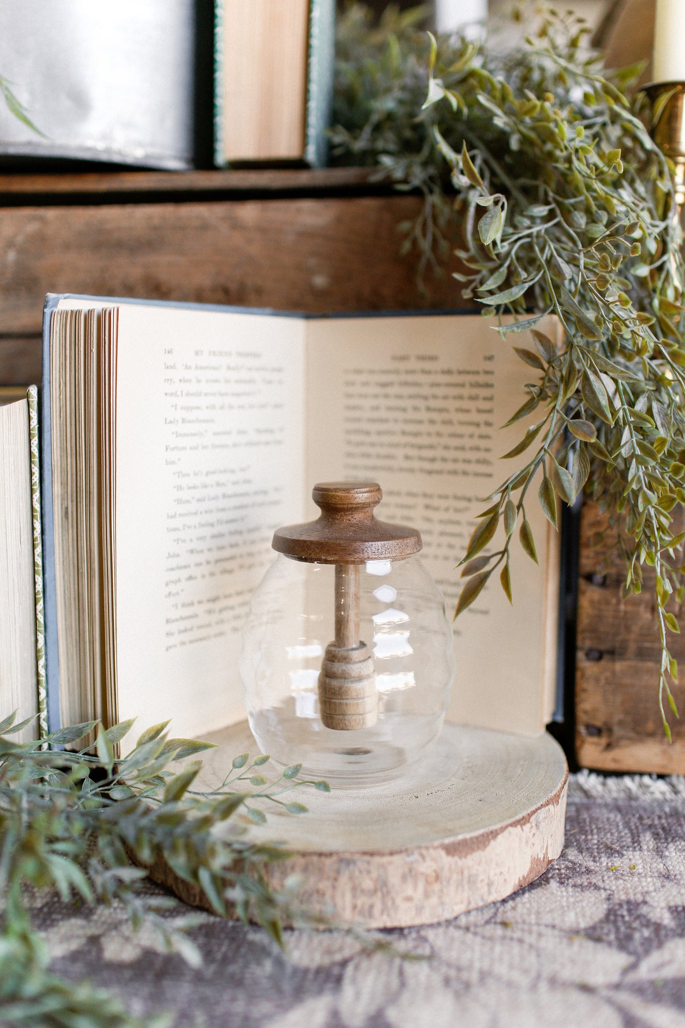 | Material: | Glass & Wood | Dimensions: | Approx 5"H x 3.75"Diam |